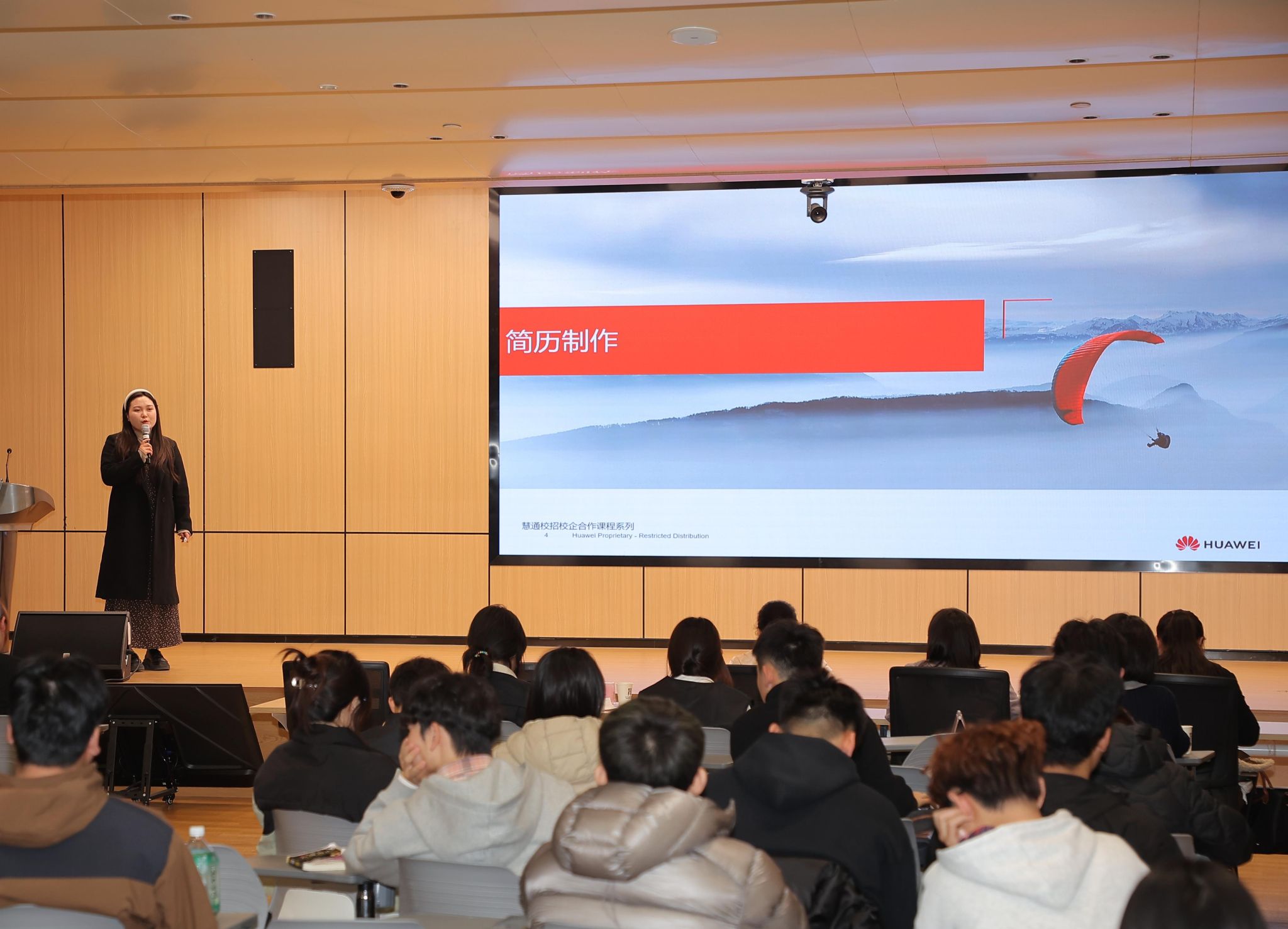 宣讲现场,李经理围绕简历基础介绍核心板块展开讲解。从基本信息的简洁呈现,到求职意向的精准聚焦,再到教育背景、实践经历的深度挖掘,逐一拆解要点。针对实践经历撰写,她引入STAR法则,结合华为慧通体验店顾问等岗位实例,指导学生将岗位能力需求融入经历描述,让简历与岗位“同频共振”。同时,强调用动词、数字量化成果,使过程详细化。通过修改前后的案例对比,直观展现简历“升级”技巧。谈及简历投递,李经理细分场景分享策略:线下宣讲、双选会需“一岗一简历”,优选彩色打印;网申严格遵循平台要求;邮件投递注重主题清晰、正文简洁,简历以PDF格式规范命名 ,还根据国企、外企等不同企业类型,指导学生调整简历侧重内容,让简历适配度更高。在随后的互动环节中,同学们积极回答李经理提出的问题,同时也提出自己在简历制作中遇到的问题,李经理也一一进行了解答,现场气氛浓烈。