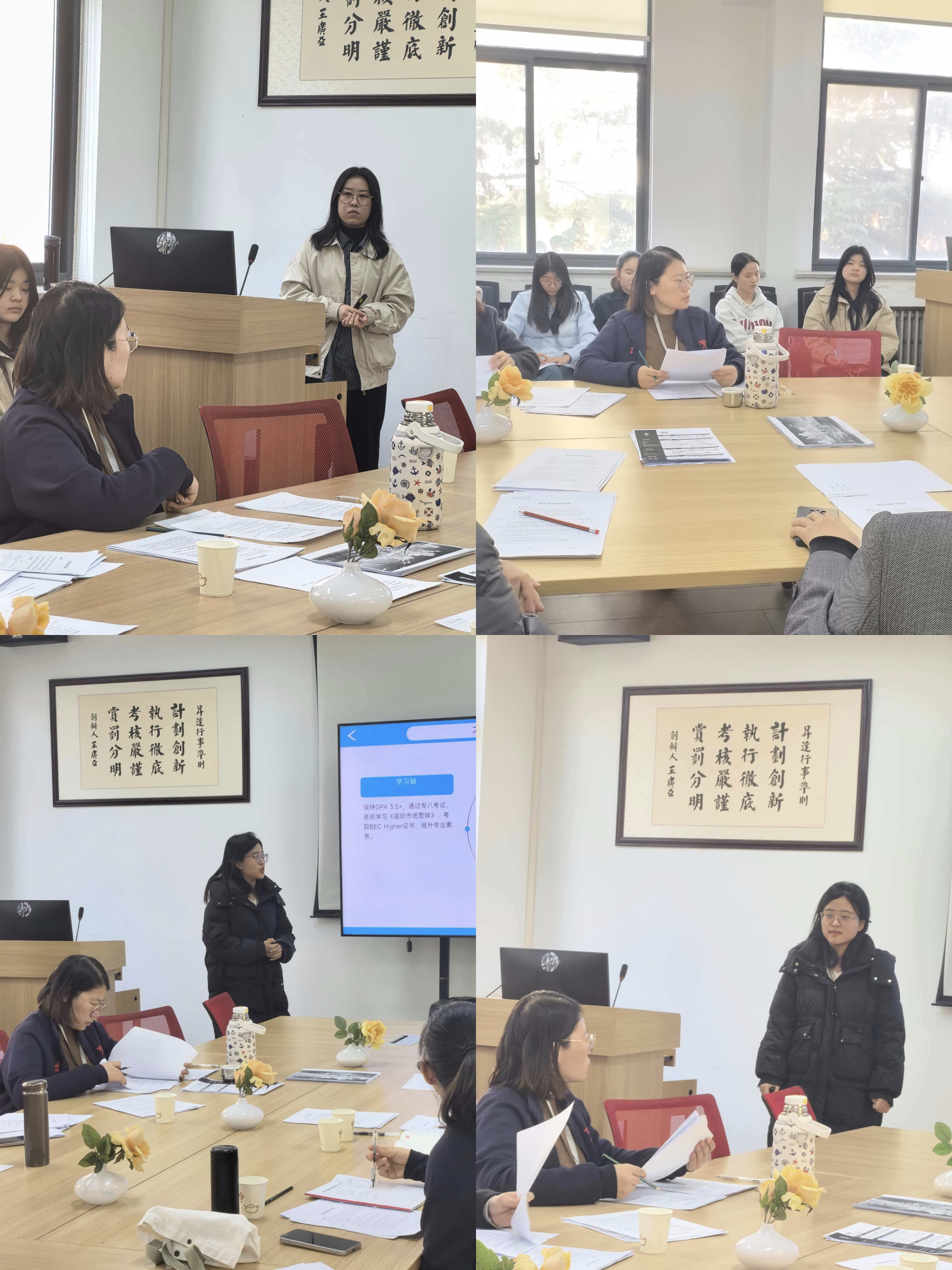 比赛过程中,选手依次完成5分钟PPT展示与2分钟评委提问环节。从成长赛道选手对个人能力进阶的规划,到就业赛道选手对职业岗位的适配分析,各赛道选手均展现出清晰的目标意识与积极的职业准备状态。答辩过程中,评委团聚焦职业规划的可行性、行业适配性、能力提升路径等核心维度展开深度互动:史苗笛总监针对就业赛道选手的“外语+跨境电商”职业方向,结合行业招聘需求,建议选手补充“平台运营案例实操”与“商务谈判口语强化”的具体计划;赵志海老师提醒成长赛道同学,需在规划中增加“阶段性能力测评指标”,避免目标模糊化;袁航、王婷婷、马林娜等专业教师则从翻译、商英、日语专业特色出发,指导选手将“笔译证书考取”“外贸单证实操”“日语JLPT高分备考”等内容嵌入规划细节。