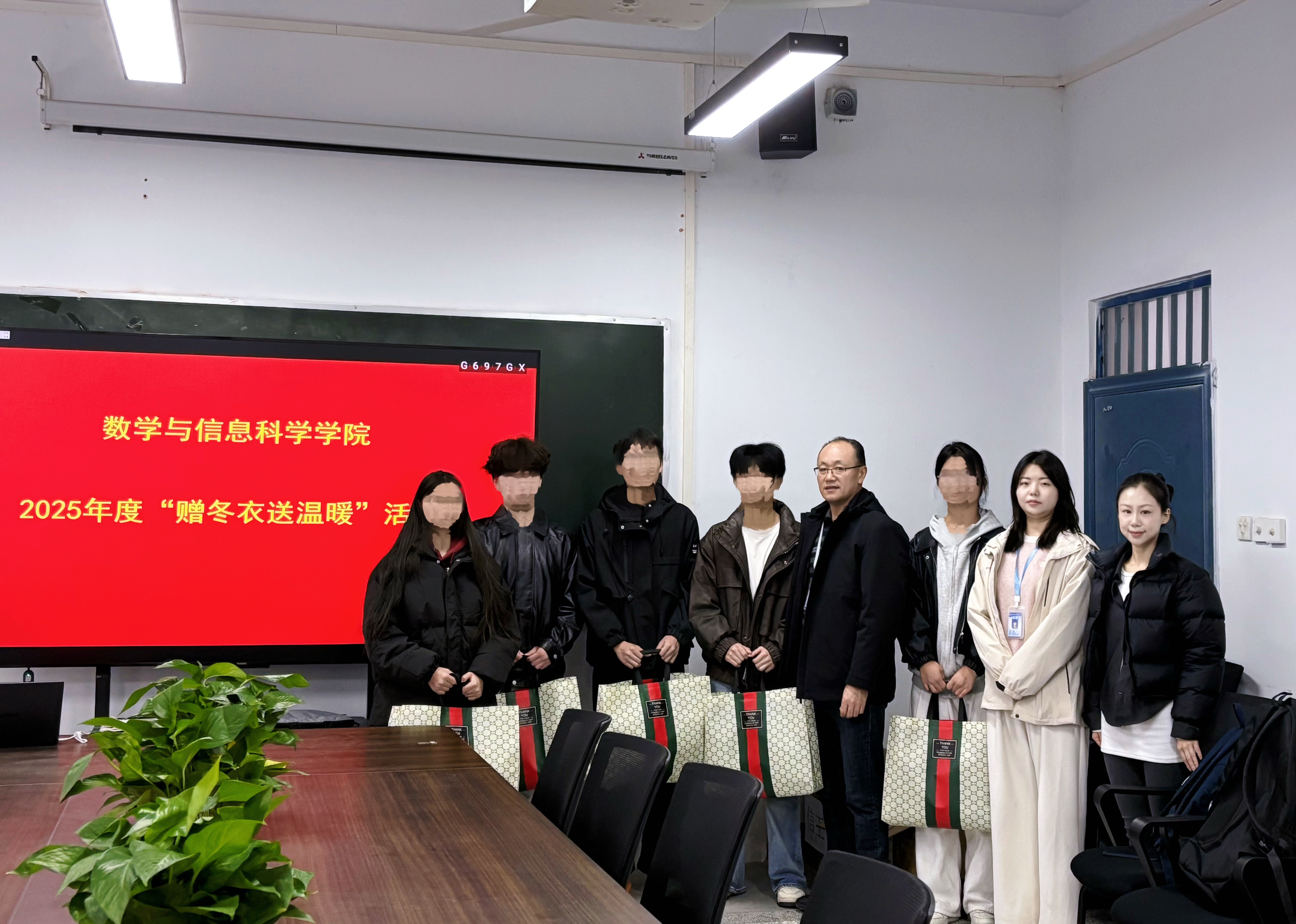 为切实关怀家庭经济困难学生,传递学校及学院温暖,11月28日,数学与信息科学学院在综合楼218室举办2025年度“赠冬衣送温暖”活动仪式。学院党委书记朱永恒、党委副书记李明明、新生班辅导员杨辉及5名受助学生参与本次活动。