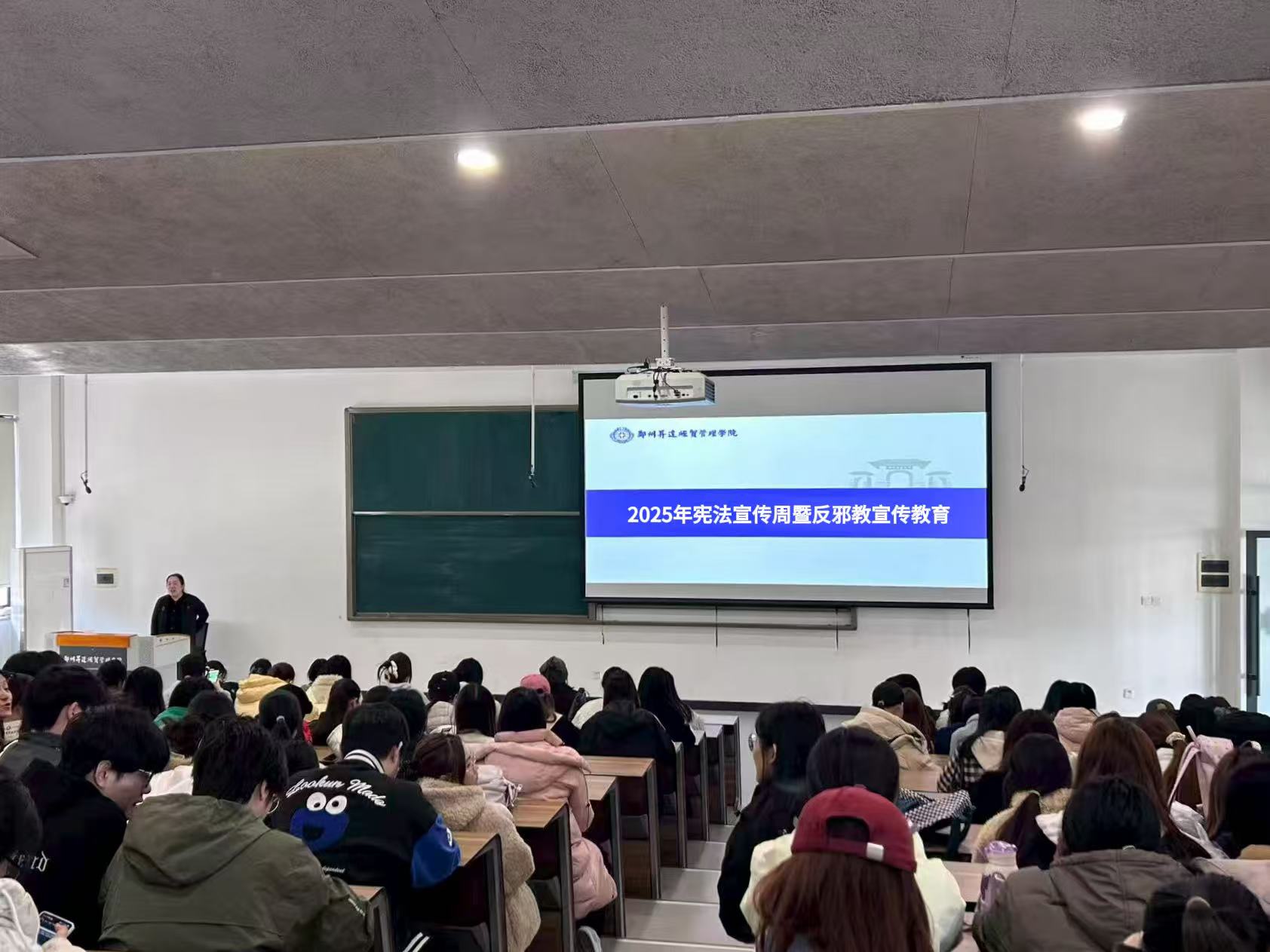 为深入学习宣传宪法精神,拧紧校园反邪教思想“安全阀”,引导全院师生增强法治意识与风险防范能力,近日,金融贸易学院反邪教协会以“宪法宣传周”为契机,精心策划并开展主题班会、校园宣传、微电影观影等系列教育活动,通过“学、看、悟、传”多维联动,让宪法权威与反邪教理念深度融入校园生活,构建起全方位、沉浸式的宣传教育格局。