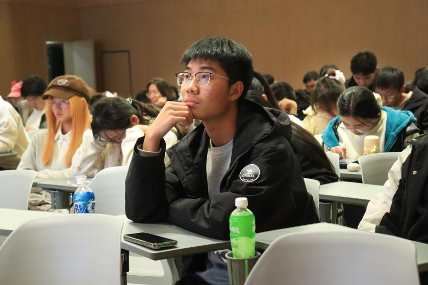 随后,孙贝贝分享了在顶端新闻从事内容策划、音视频制作、渠道对接等工作的实战经验。他将“媒体融合”“内容创新” 等行业前沿理念与脱贫攻坚典型人物报道等具体案例相结合,解读了如何运用专业理论知识解决实际工作中的问题。在互动环节,2025级新闻学专业学生王佳香围绕 “新闻素养培育”“技能提升重点”等问题提问,孙贝贝结合自身经历给予解答,现场气氛轻松热烈。