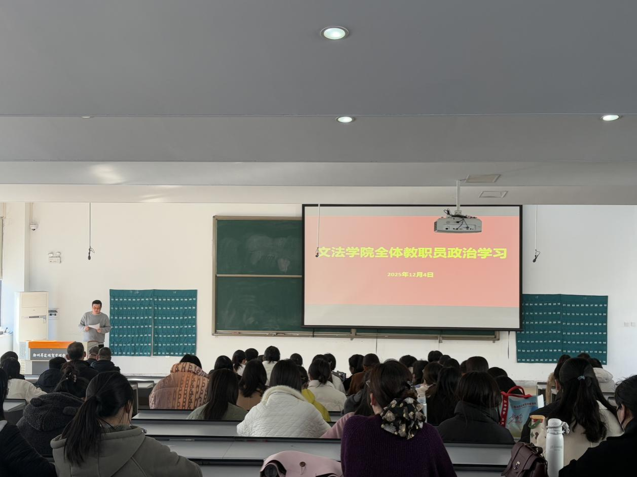 12月4日下午,文法学院在教1楼118教室召开全体教职员政治学习会,通过政策解读、典型观摩、精神领悟三重维度的学习,深化对新时代教师使命的认知,夯实教育教学工作的思想根基。