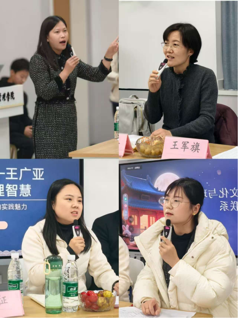 评委团的点评始终围绕“传统管理文化如何落地现代管理”这一核心展开,兼具指导性与启发性。李玲玲老师以老子“水”的智慧提出“管理需辨明‘道’与‘术’”的核心观点。张继宏教授结合案例补充点评,以“中庸之道的‘中’是最高智慧”深化认知。其他评委分别从内容提炼、观感呈现、选题方向等维度给出建议,强调“以小见大”“留得住观众”的重要性,选手们快速回应提问,互动氛围热烈。