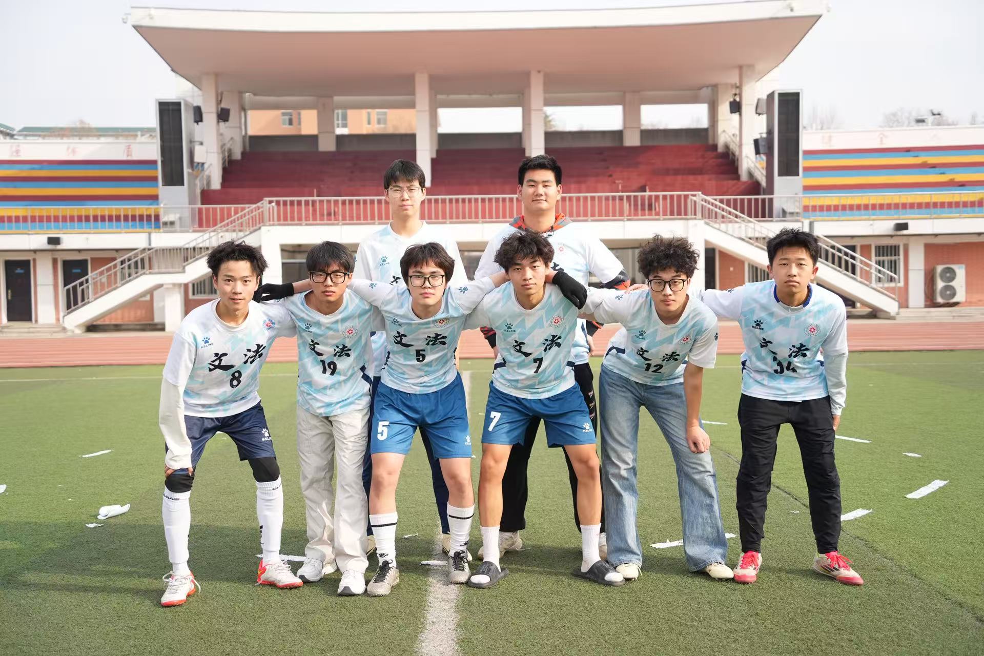 为丰富校园文体生活,凝聚团队奋进力量,展现文法学子昂扬向上的精神风貌,经过前期激烈的班赛,12月9日文法学院新生足球赛在体育场隆重举行。文法学院部分同学热情到场观赛。