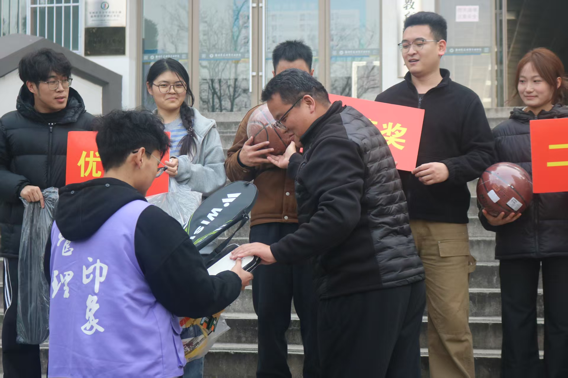 经过几轮的激烈角逐,四个实力强劲的班级,通过1V1的比拼在一番较量之下选拔出本次比赛的冠军。各班级的最终排名也随之揭晓,第一名:2025级工商管理专升本三班和2025级工商管理专升本四班,第二名:2024级旅游管理本科一班和24级旅游管理本科二班,第三名:2024级大数据管理与应用本科三班,第四名:2025级工商管理专升本一班和2025级工商管理专升本二班,热烈祝贺以上班级在本次比赛中取得优异的成绩,并由管理学院党委书记职正路同志和管理学院党委副书记许广庆老师为获奖班级颁发奖品。