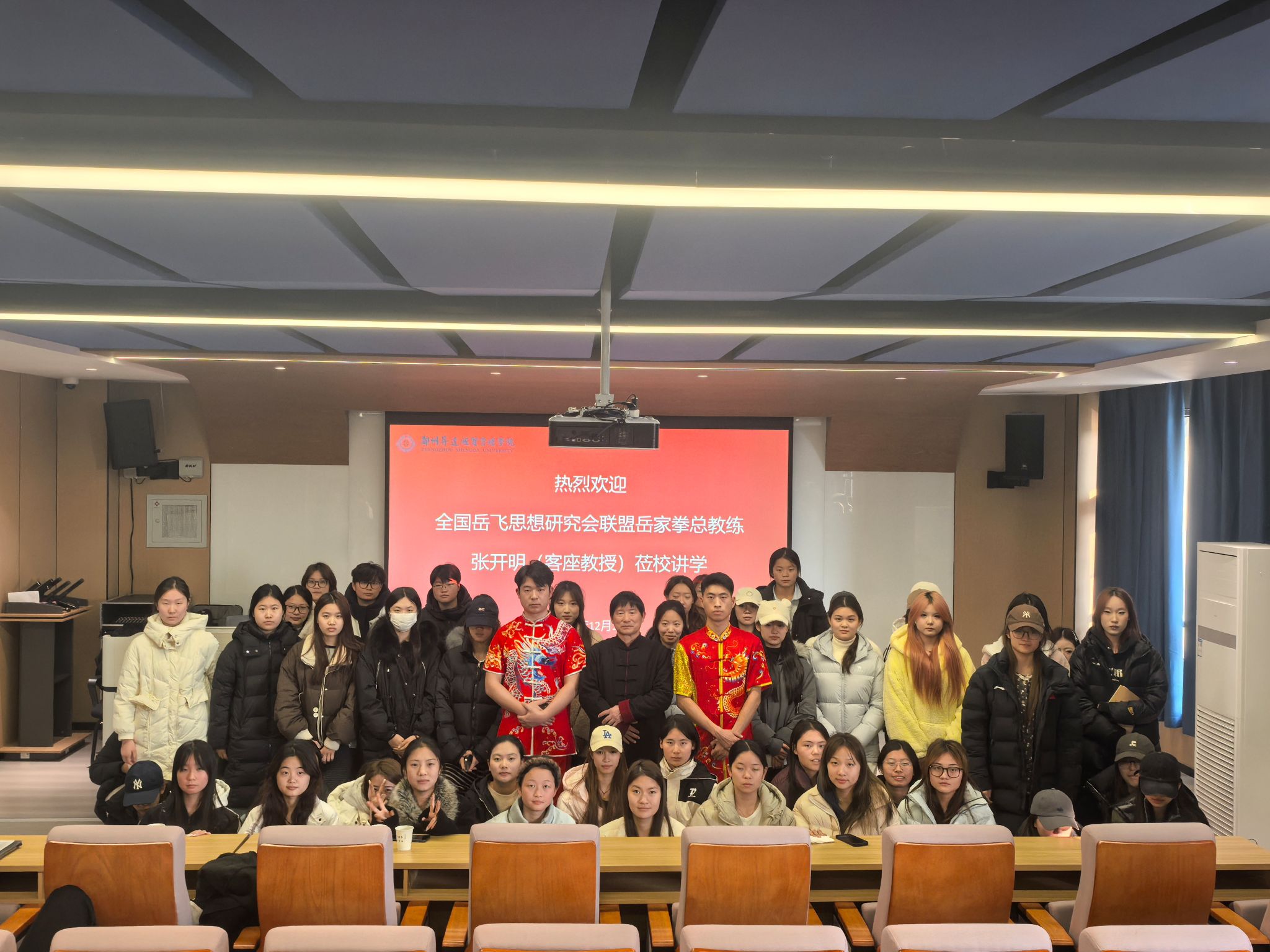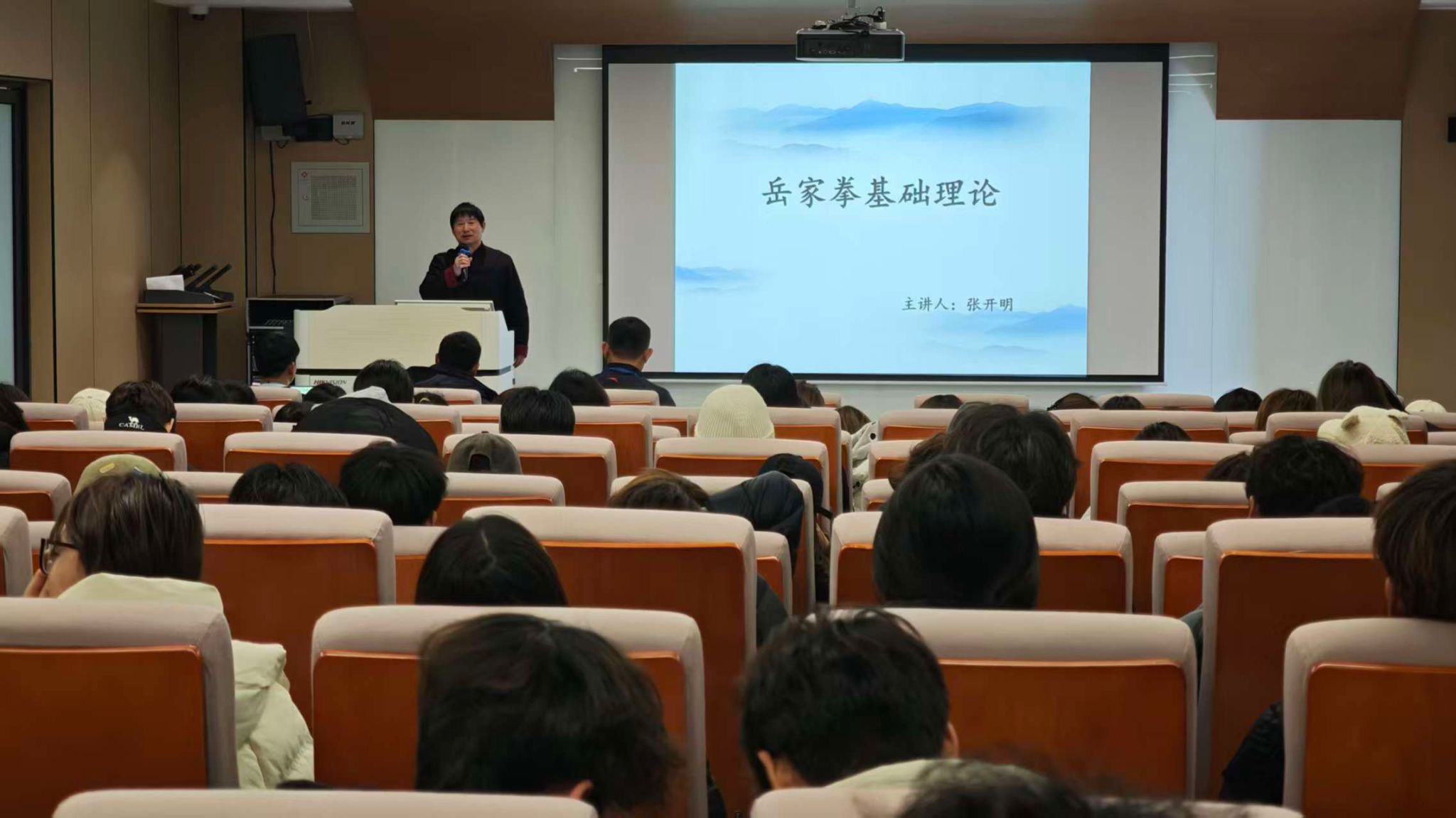12月11日,一场以“岳家拳基础理论”为主题的专题讲座在我校登封校区成功举行。本次讲座特邀全国岳飞思想研究会联盟岳家拳总教练张开明担任主讲人,体育学院院长张王利、教师代表和登封校区体育学院全体学生共同参加。