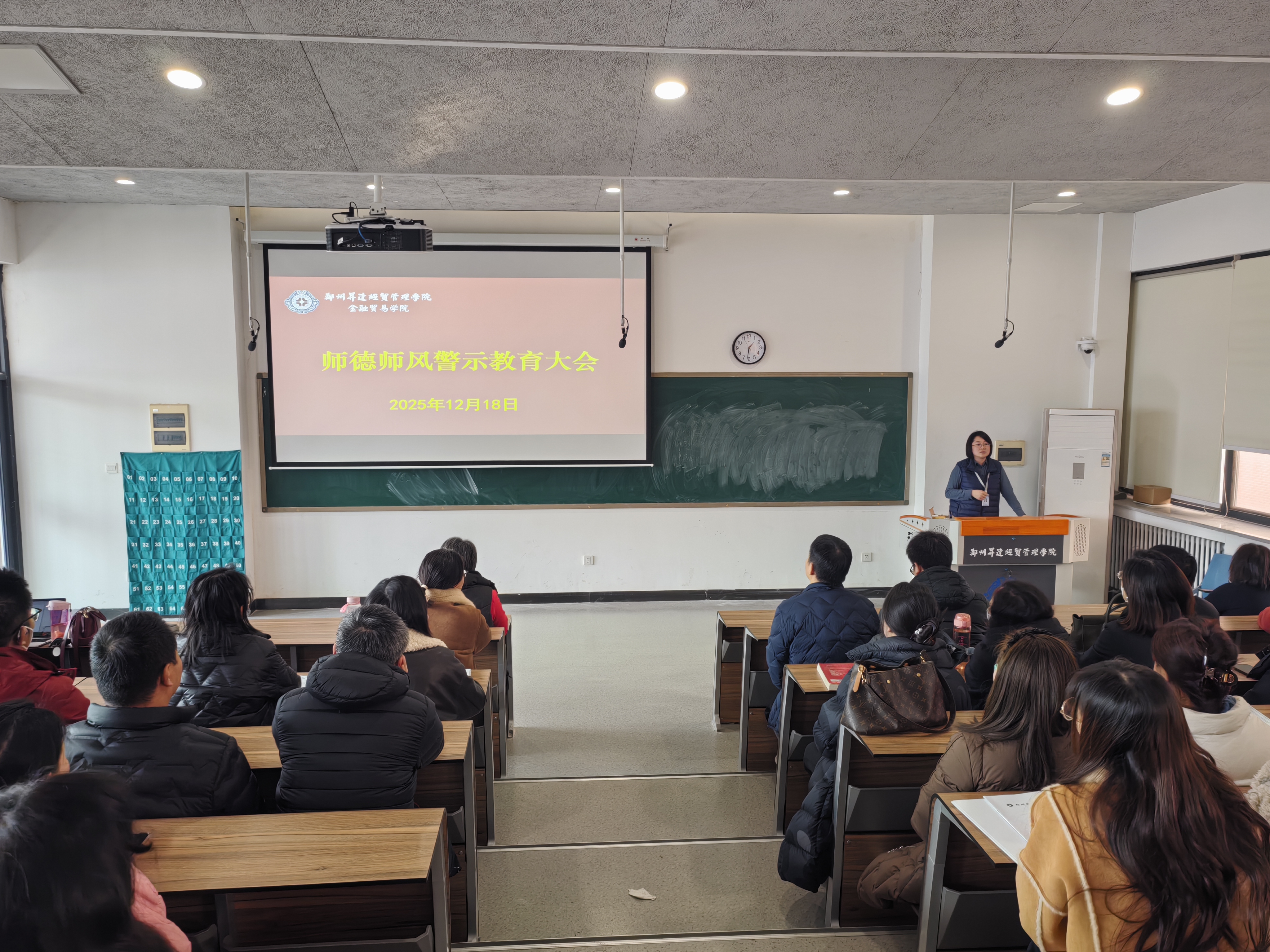 为全面强化师德师风建设,切实筑牢全体教职员思想道德防线,12月18日,金融贸易学院在210教室召开师德师风警示教育大会。学院领导班子成员及全体教职员参会。