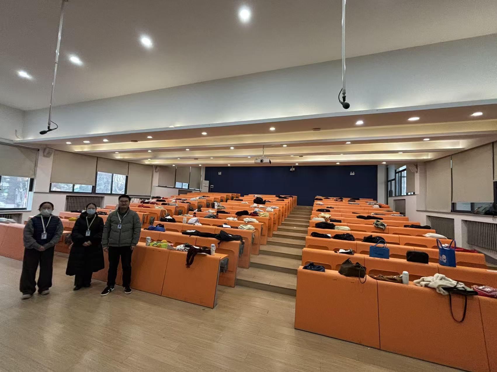 12月20日毕业班辅导员们提前到教学楼116教室,系统规划物品存放区域,明确分类、保管及领取流程,张贴考场须知,通过细致安排营造有序、安心的候考环境。