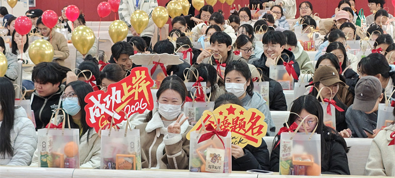 除了暖心的鼓励,学院还为考研学子们精心准备了满载心意的“考研大礼包”。礼包里,寓意“属你上岸”的薯愿薯片、象征“心想事成”的新鲜橙子、代表“能量满格”的士力架巧克力、寄托“好事发生”的毛绒挂链、寓意“旺气十足”的旺仔牛奶,还有抵御严寒的暖宝宝与手写加油贺卡,每一份礼物都饱含着学院的良苦用心。满满的仪式感,让同学们备受鼓舞,大家纷纷表示,定将不负学院的关怀与厚望,带着这份温暖全力以赴冲刺备考,用优异的成绩为自己的逐梦之路交上一份满意的答卷。