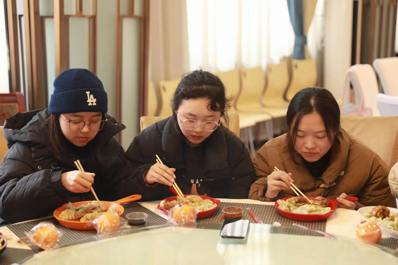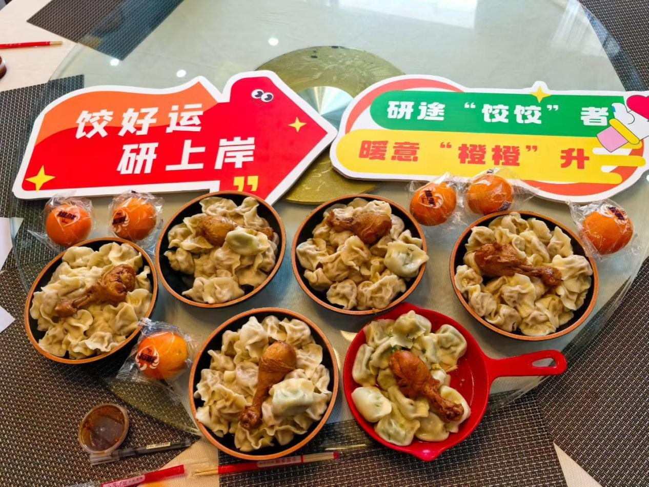 12月19日至22日,餐厅内暖意融融、温情涌动,成为冬日校园里最暖心的角落。“饺纳百福,研梦橙真”“不负韶华,一战成硕”等励志标语醒目悬挂,红色的装饰与暖心的文字相映成趣,让用餐区域变身充满正能量的“追梦加油站”。考研暖心饺子窗口前,新鲜足量、口味丰富的饺子持续供应,学院与餐厅提前优化的出餐流程大幅缩短等待时间,让学子们在紧张的备考间隙,无需久候便能吃上热乎可口的饺子。