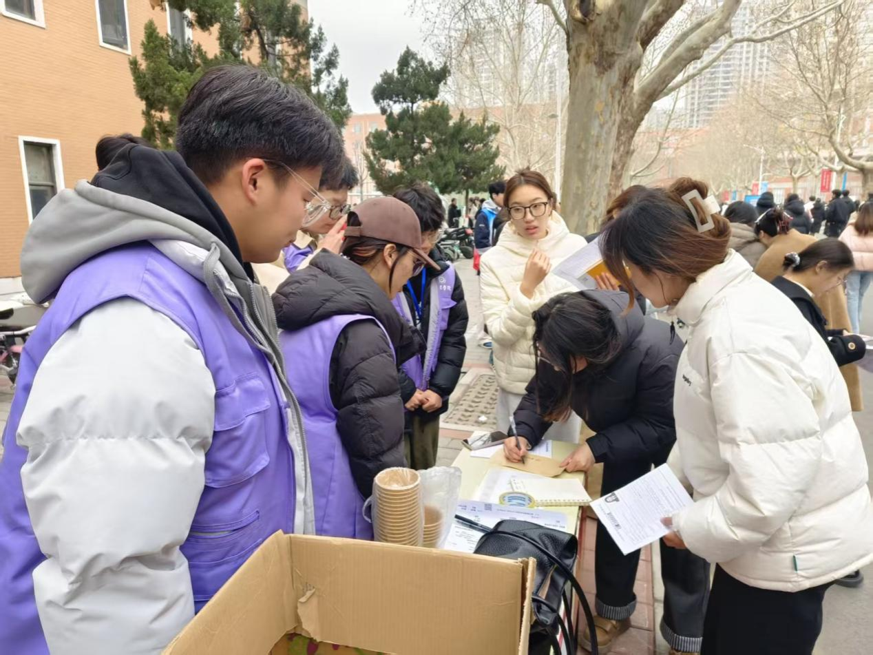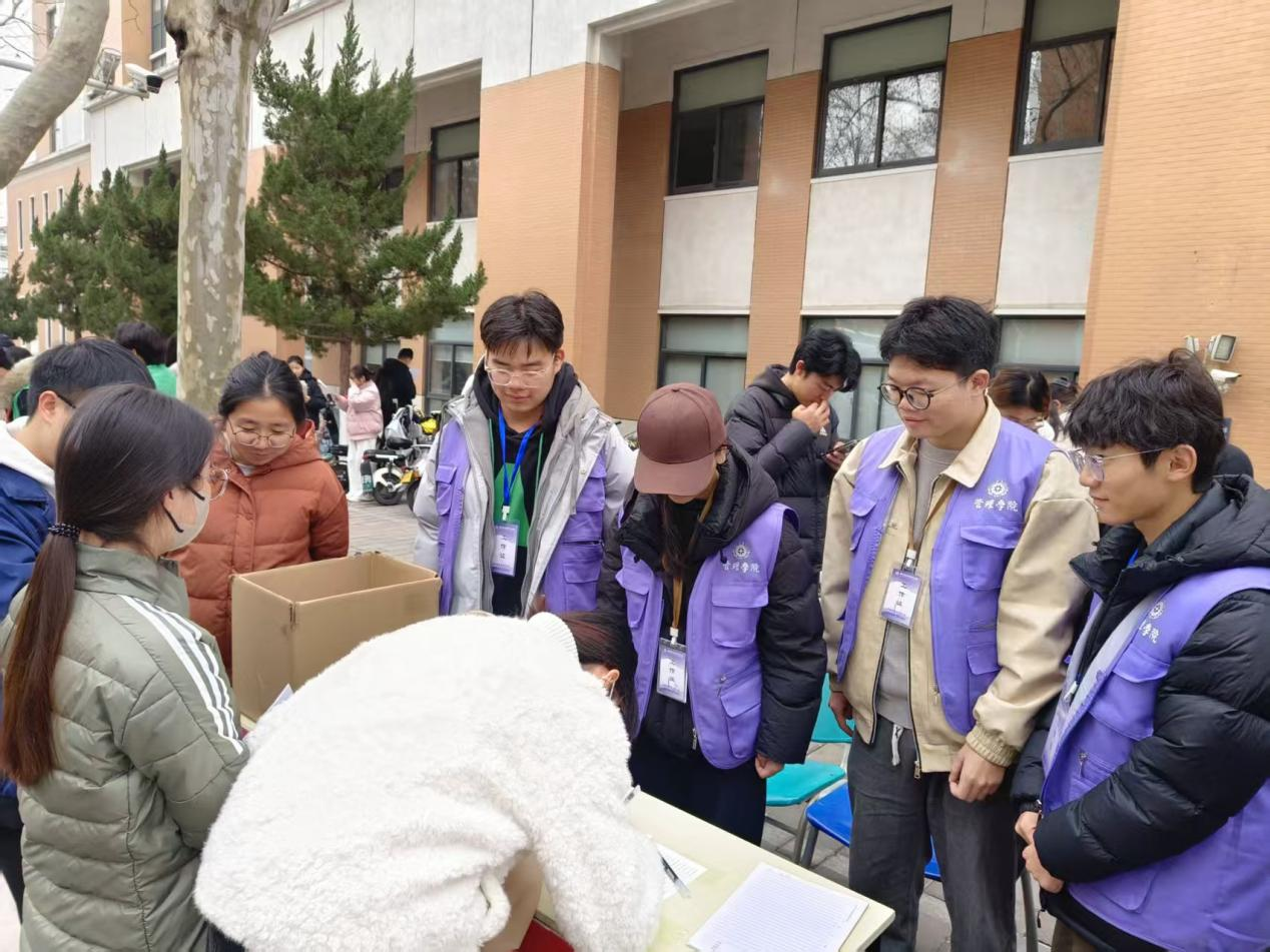 面对紧张的考试日程,管理学院提前筹划,精心布置服务站点,解决考生随身携带贵重物品不便、考前无处休整等实际困难。服务站专门设有贵重物品寄存处,提供手机、证件等物品的保管服务,由志愿工作人员登记、看管,确保安全无虞。同时,教室内供应暖气、热水,为冬日里奔赴考场的学子驱散寒冷、送上温暖。