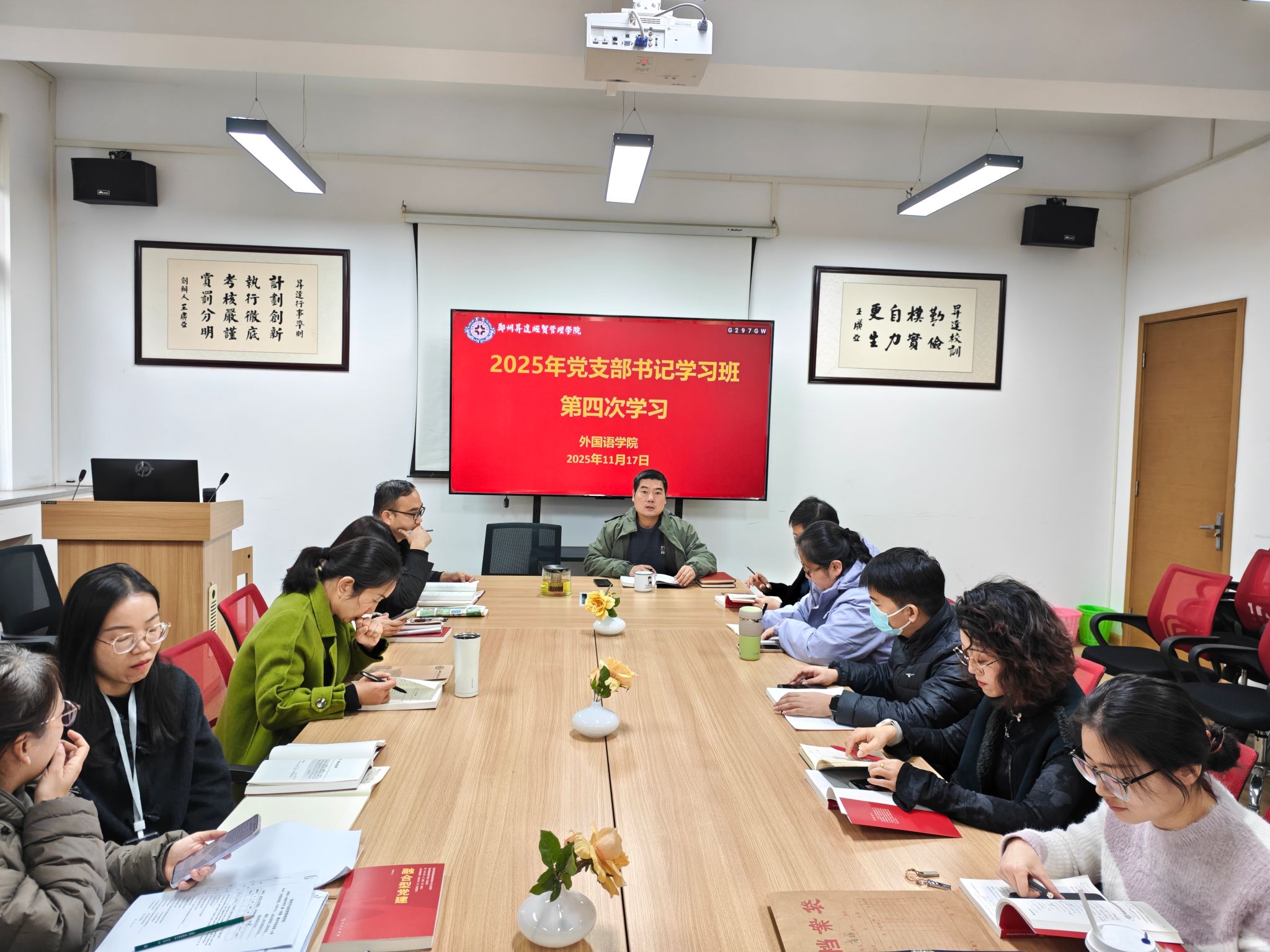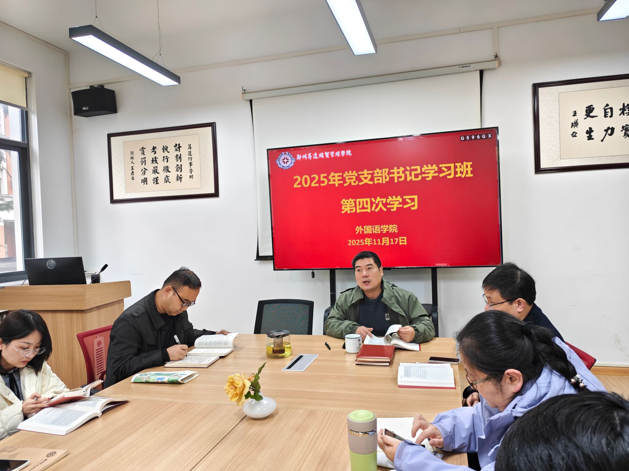 2025年11月17日,外国语学院召开2025年党支部书记学习班第四次学习会。全体党委委员及各党支部书记参加会议。会议由学院党委书记石皓召主持,旨在进一步提升基层党务工作者的理论水平和实务能力,推动党建工作与业务发展深度融合。
