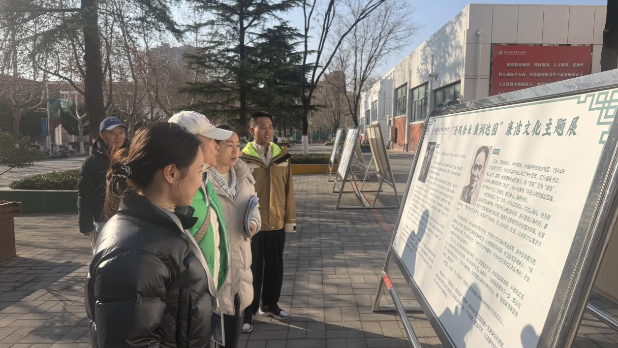 12月25日,体育学院组织全体教职工前往教学二号楼东南角参观"清风徐来 廉润达园"廉洁文化主题展。