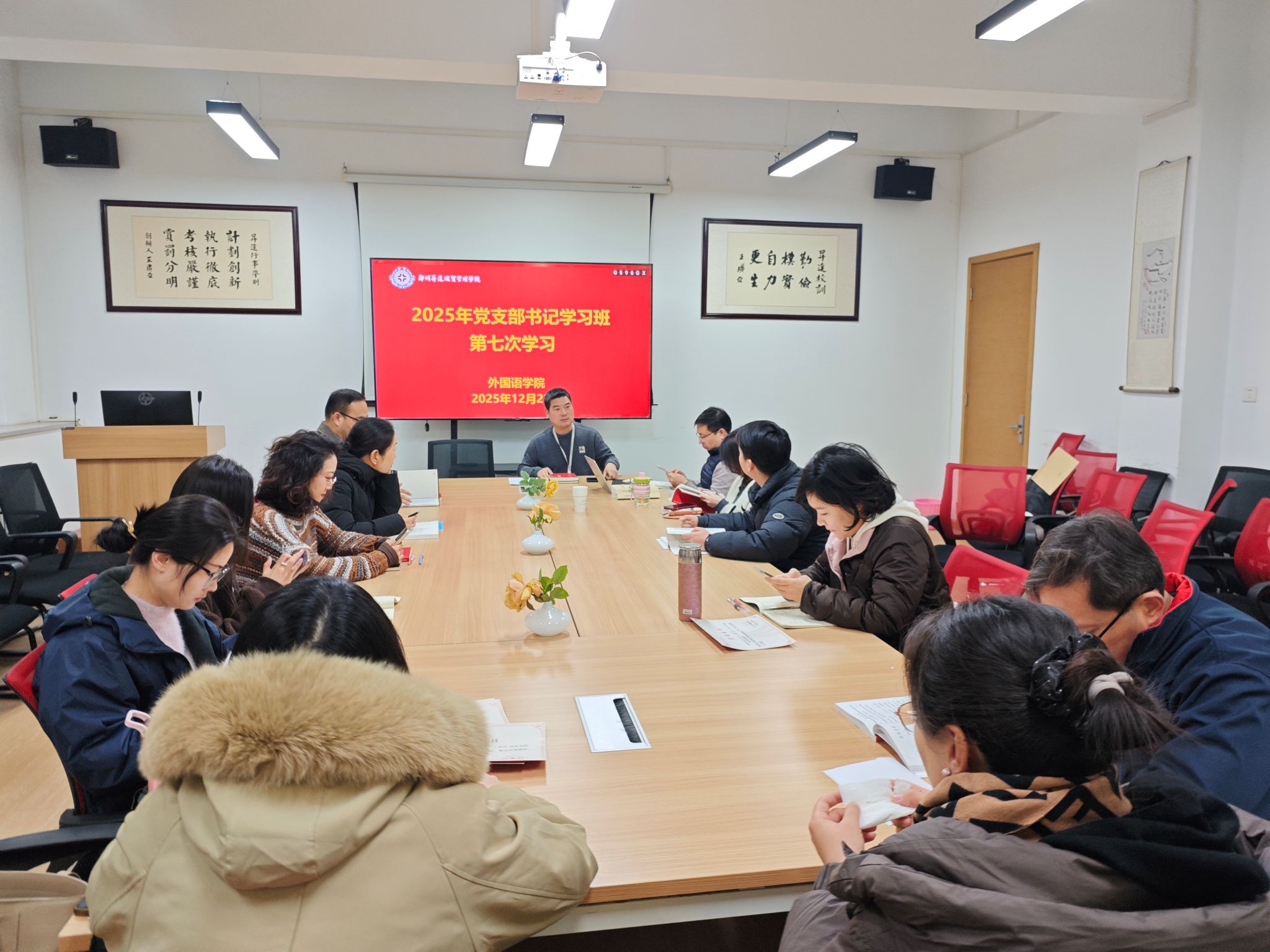 2025年12月22日,外国语学院在学院206会议室召开2025年党支部书记学习班第七次学习会。全体党委委员及各党支部书记参加会议,会议由学院党委书记石皓召主持。