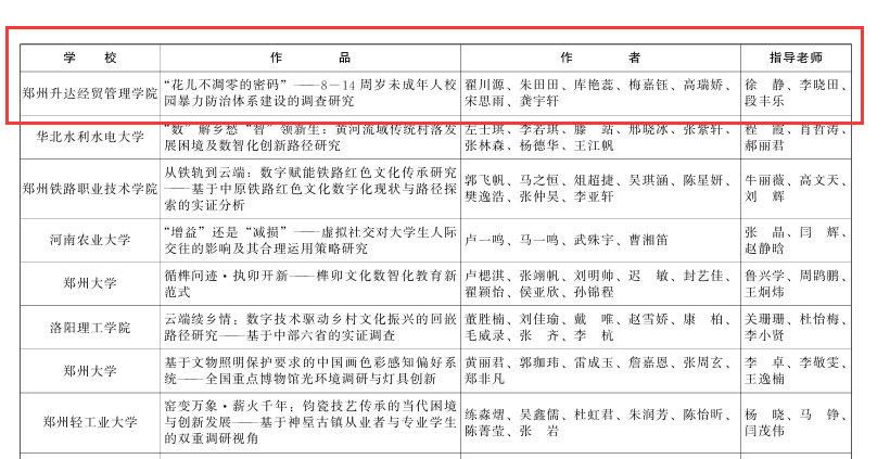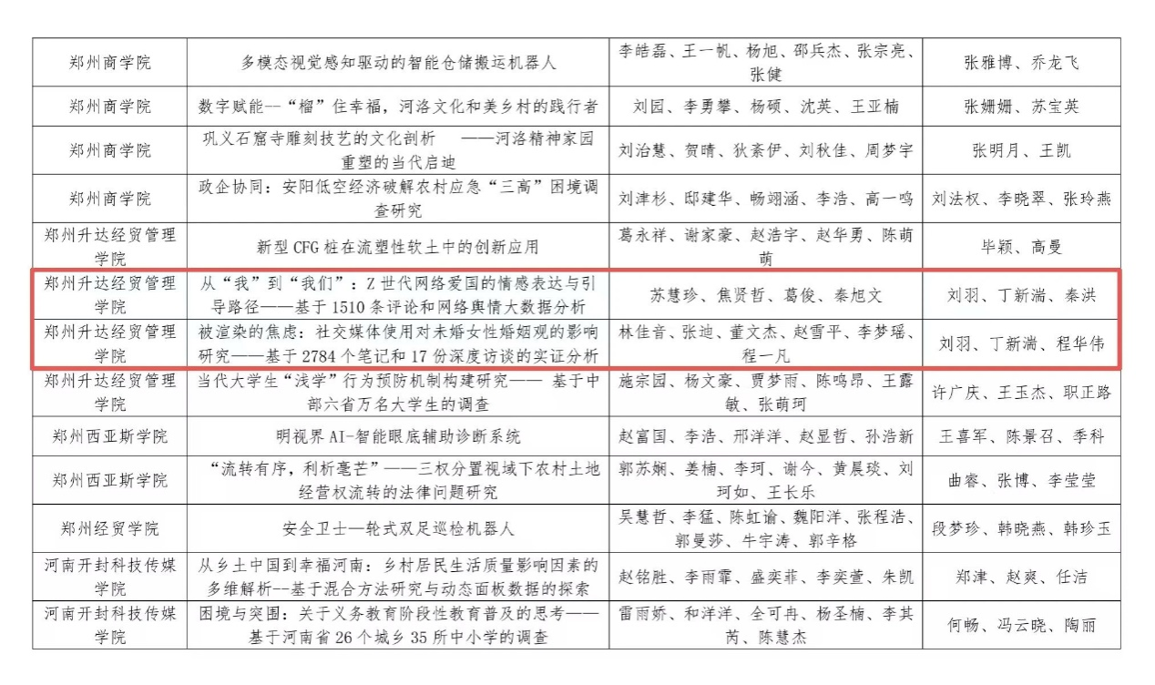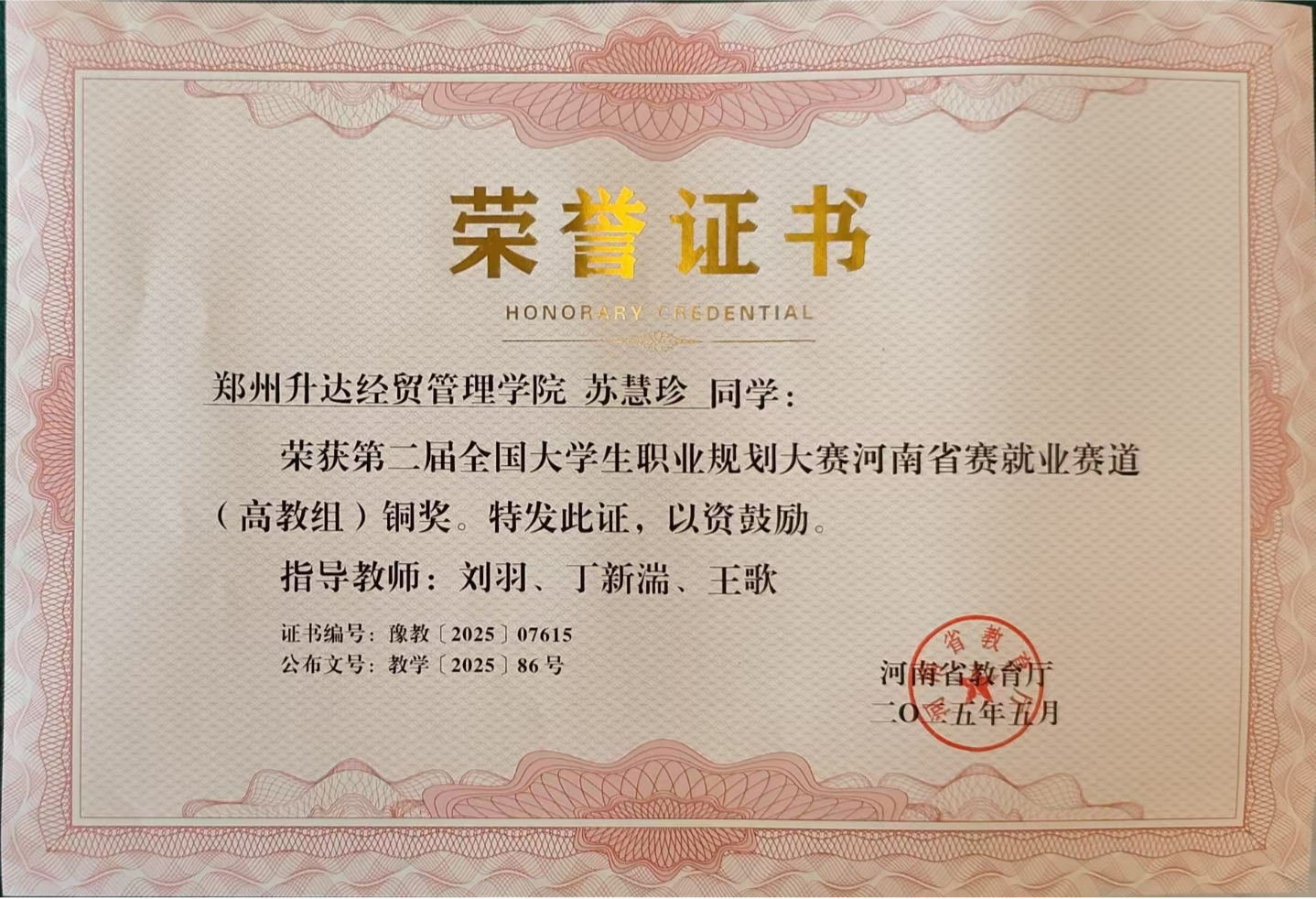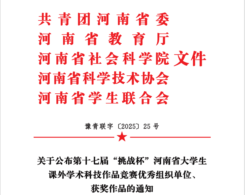 2023级法学专业翟川源荣获第十七届“挑战杯”河南省大学生课外学术科技作品竞赛特等奖。2022级新闻学专业苏慧珍、林佳音分别荣获第十七届“挑战杯”河南省大学生课外学术科技作品竞赛一等奖。2022级新闻学专业苏慧珍、2022级法学专业史加兴分别荣获第二届全国大学生职业规划大赛河南省赛就业赛道铜奖。