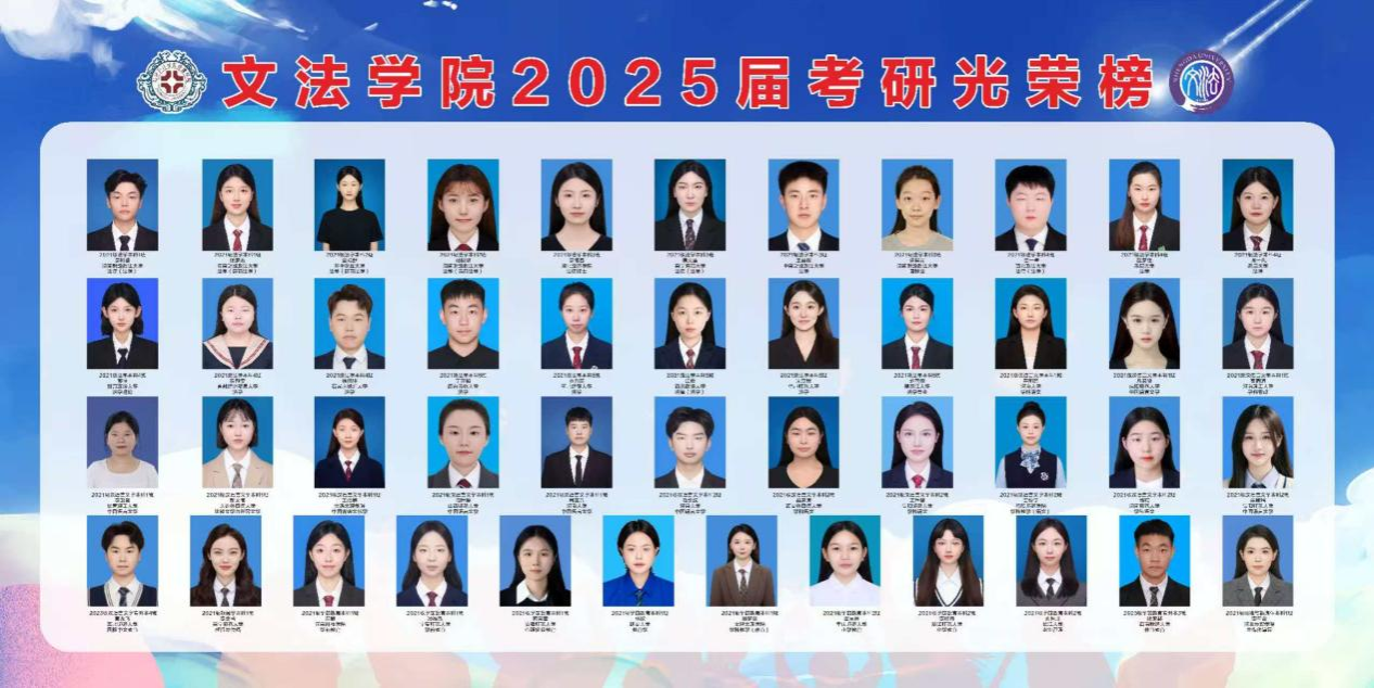 文法学院2025届44名本科毕业生应届考取中南财经政法大学、悉尼大学等国内外知名高校硕士研究生;2025届法学毕业生参加国家统一法律职业资格考试,通过率达到44.74%,较去年同期提升3.36个百分点。