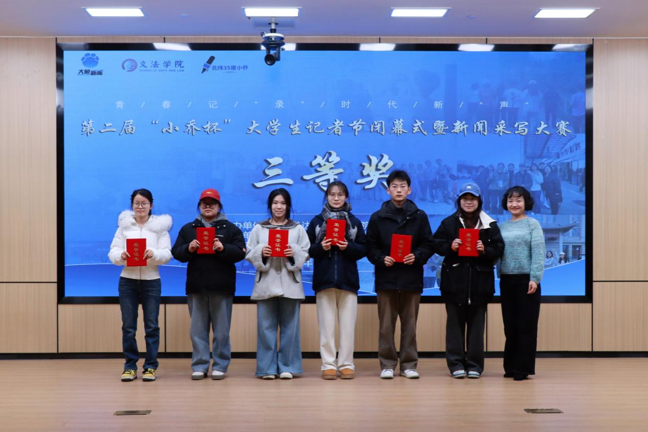 12月30日,第二届“小乔杯”大学生记者节闭幕式暨新闻采写大赛颁奖典礼在华亿体育登录新图书馆二楼1号报告厅举行。文法学院副院长赵严俊、党委副书记郑玲玲、新闻学教研室主任赵静及校内外获奖师生代表出席活动。