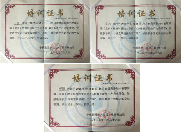 快速发展的AI智能时代背景下,为提高教师运用数字技术进行教育优化、创新及变革的能力,2025年7月21日,会计学院选派于越、吴小会、贾豪毅3位教师参加了由中教服国培(北京)教育科技院主办,北京中教师培教育科技服务中心协办的“AI+教育新质生产力实战营:智能教学设计与课堂效能提升工作坊”。此次工作坊在贵阳举行,会议吸引了来自全国各地的专家学者、教育工作者及业界精英。
