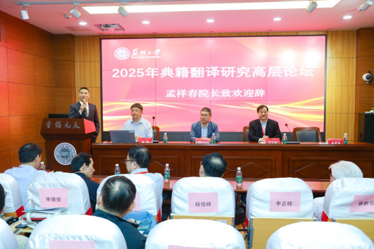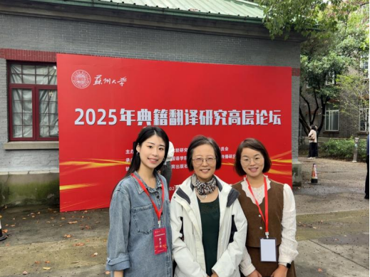 2025年10月17日至10月19日,2025年典籍翻译研究高层论坛在苏州大学天赐庄校区隆重举行。本次论坛由中国英汉语比较研究会典籍英译专业委员会主办,苏州大学外国语学院与中国文化翻译与传播研究基地联合承办,汇聚了国内外典籍翻译领域的知名专家学者,共同探讨典籍翻译的理论创新与实践路径。华亿体育登录外国语学院翻译教研室赵文静教授、杜小芳老师、陈易萌老师参会,与业界同仁展开深度学术交流。