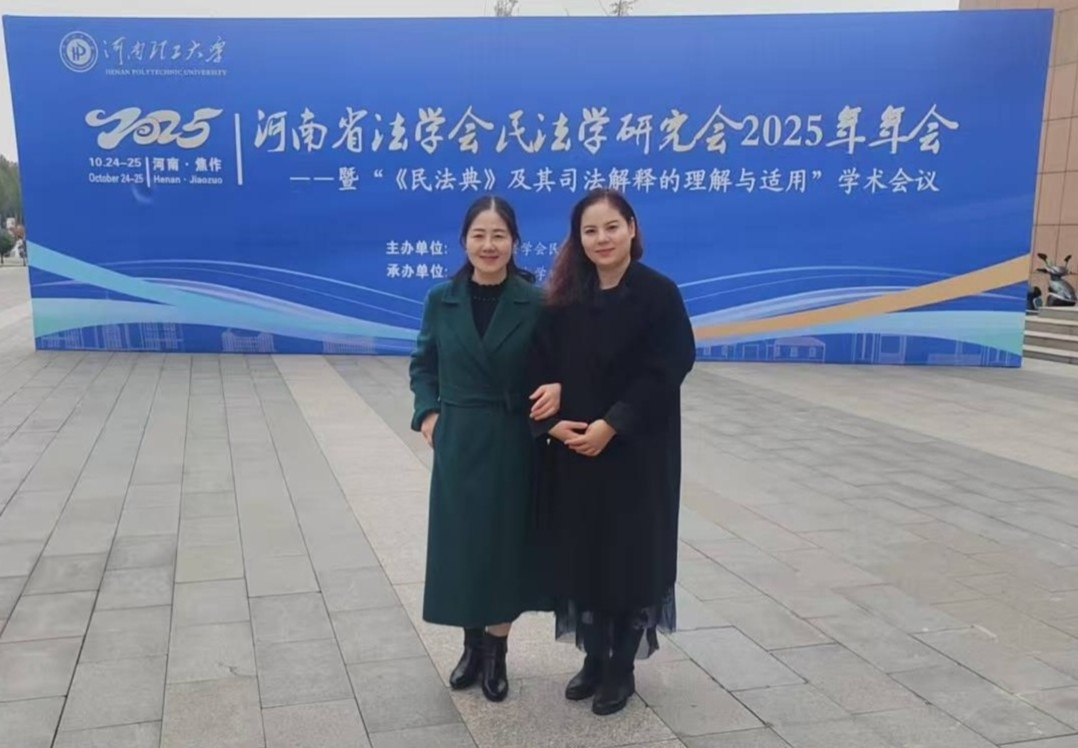 2025年10月25日,由河南省法学会民法学研究会主办,河南理工大学文法学院承办的2025年年会,在河南省焦作市召开。本次年会汇聚了省内外民法学领域的知名学者、司法实务专家及高校代表。我院法学专业徐静、刘燕飞两名教师应邀参加会议。