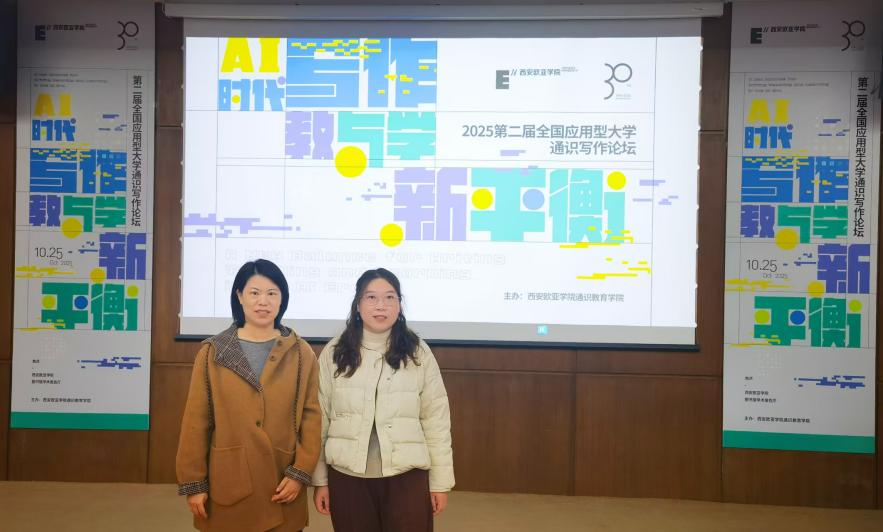 2025年10月25日,文法学院汉语言文学教研室曹丹丹、谢秋老师赴西安欧亚学院,参加“AI时代下写作教与学的新平衡:2025第二届全国应用型大学通识写作论坛”。