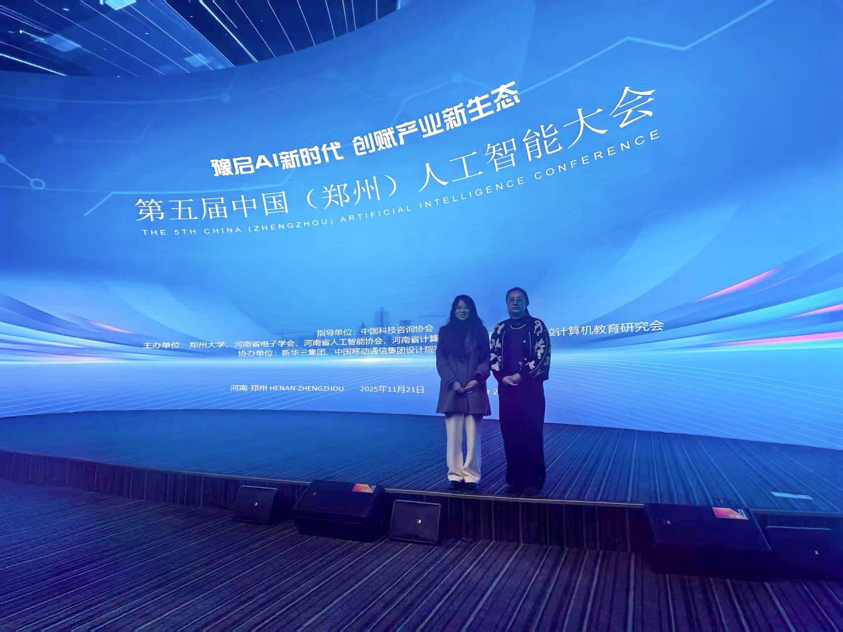 2025年11月21日,会计学院庞瑞博、贺岚两位老师参加了在郑州举办的第五届中国(郑州)人工智能大会。本次大会以“豫启AI新时代、创赋产业新生态”为主题,汇聚了来自学术界、产业界及政府机构的众多专家学者,共同探讨人工智能技术的前沿进展与产业融合新路径。