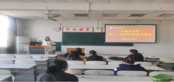 外国语学院为深化产教融合,助力应用型人才培养,推动翻译专业教学与行业实践紧密结合,举办第十一批教师挂职锻炼汇报交流会,李晓婕老师和黄永佳老师围绕其挂职经历展开成果分享。