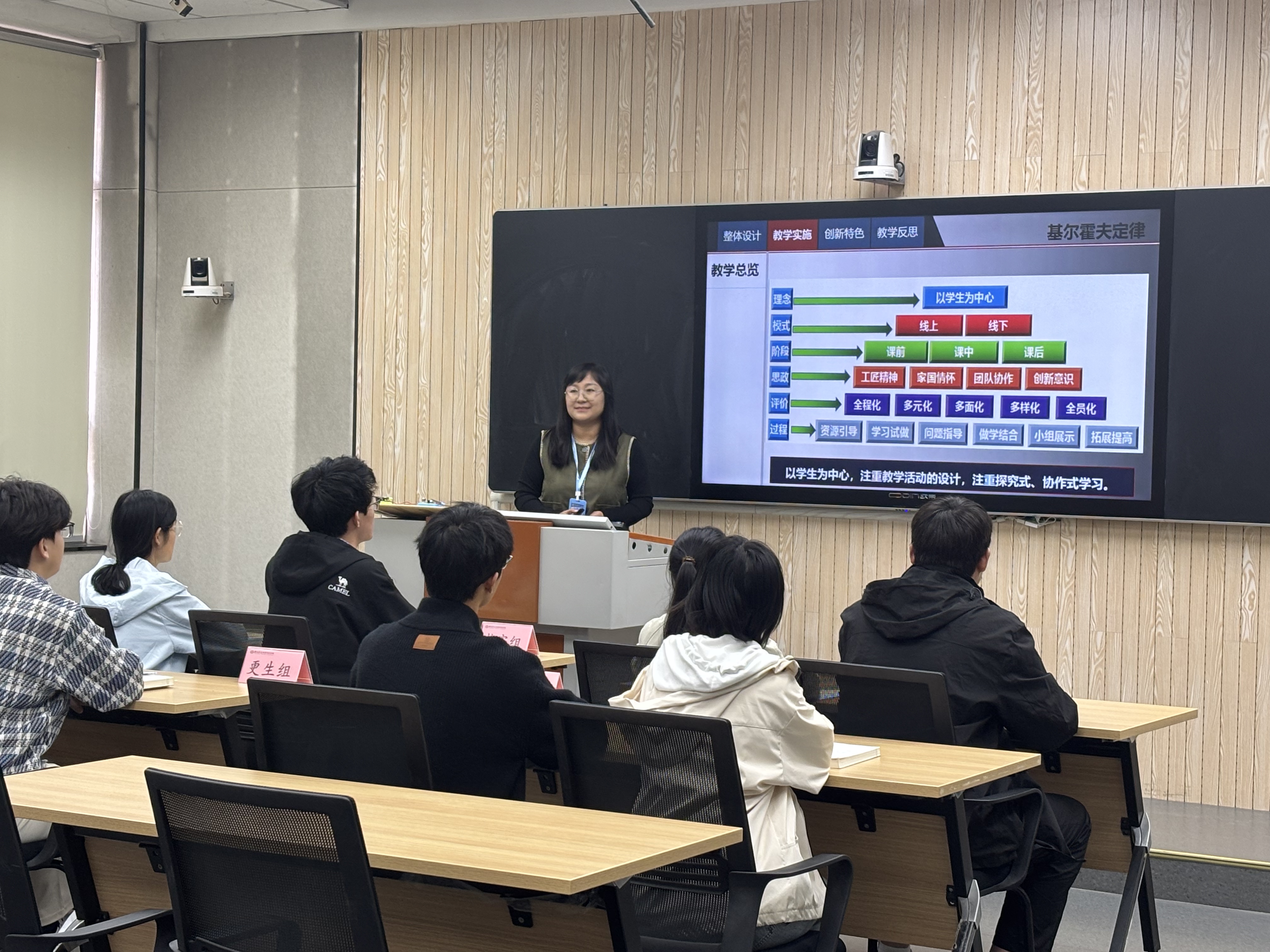 比赛现场,各位教师准备充分,教态自然得体,教学思路清晰,语言表达准确精炼,课堂互动效果良好,在专家提问环节对答从容,均展现出最佳状态。