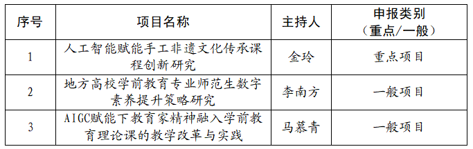 根据《河南省教育厅办公室关于做好2025年教师教育课程改革研究项目结项和2026年项目申报工作的通知》(教办师〔2025〕220 号)文件精神,我校组织了2026年河南省教师教育课程改革研究项目申报遴选工作,经各学院申报,专家组评审,拟推荐《人工智能赋能手工非遗文化传承课程创新研究》等3个项目申报2026年河南省教师教育课程改革研究项目,现予以公示,具体见下表: