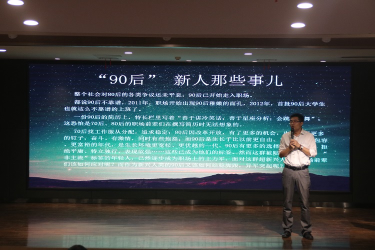 讲座开始后,朱杰华经理从工程管理专业的内涵、建筑行业的发展现状、90后毕业生的特点、在职场中的工作需求、转变就业心态的要点、做好职业规划的注意事项等多个方面分享了自己从事人力资源工作以来的经验总结。朱经理首先讲到了建筑行业正在向智能化、信息化方向转变,企业需要转型,从业者和即将从业的学生也需要跟随行业的变化,调整心态,努力前行。在讲座进行中,朱经理现场还进行了简单的就业心态调查,将在校生的就业心态与初入职场毕业生的心态、成熟职场人的心态进行对比,生动地为同学们讲解了就业思维的转变,并为职业规划提出了宝贵意见和建议。