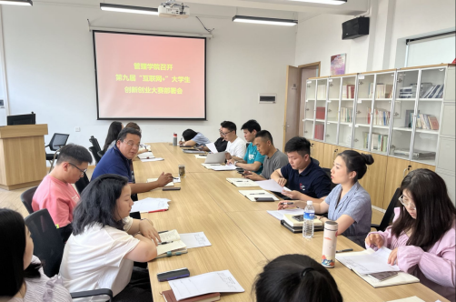 2023年6月13日下午,管理学院在305会议室召开第九届“互联网+”大学生创新创业大赛部署会。党委书记职正路、行政秘书许广庆以及全体辅导员参加此次会议。