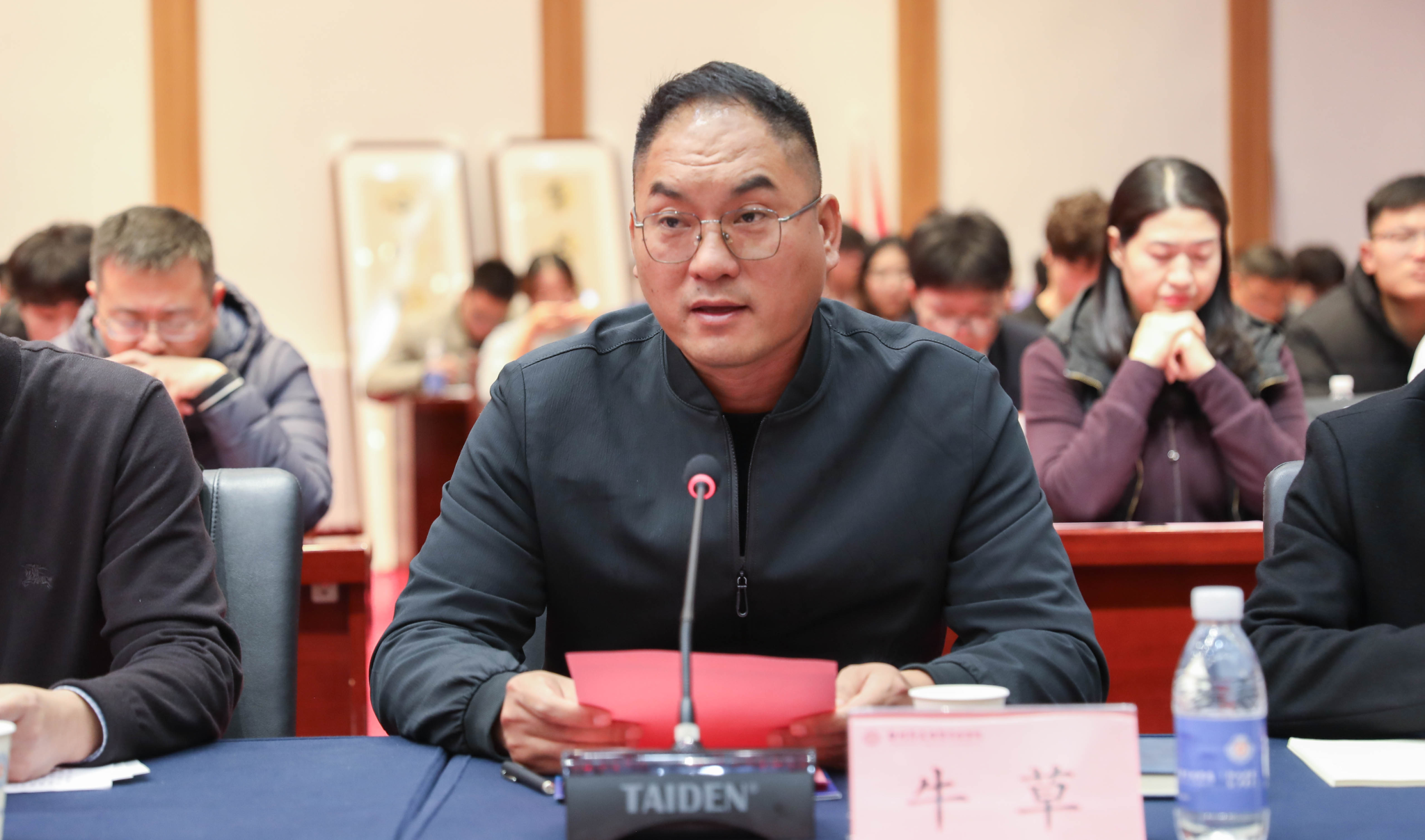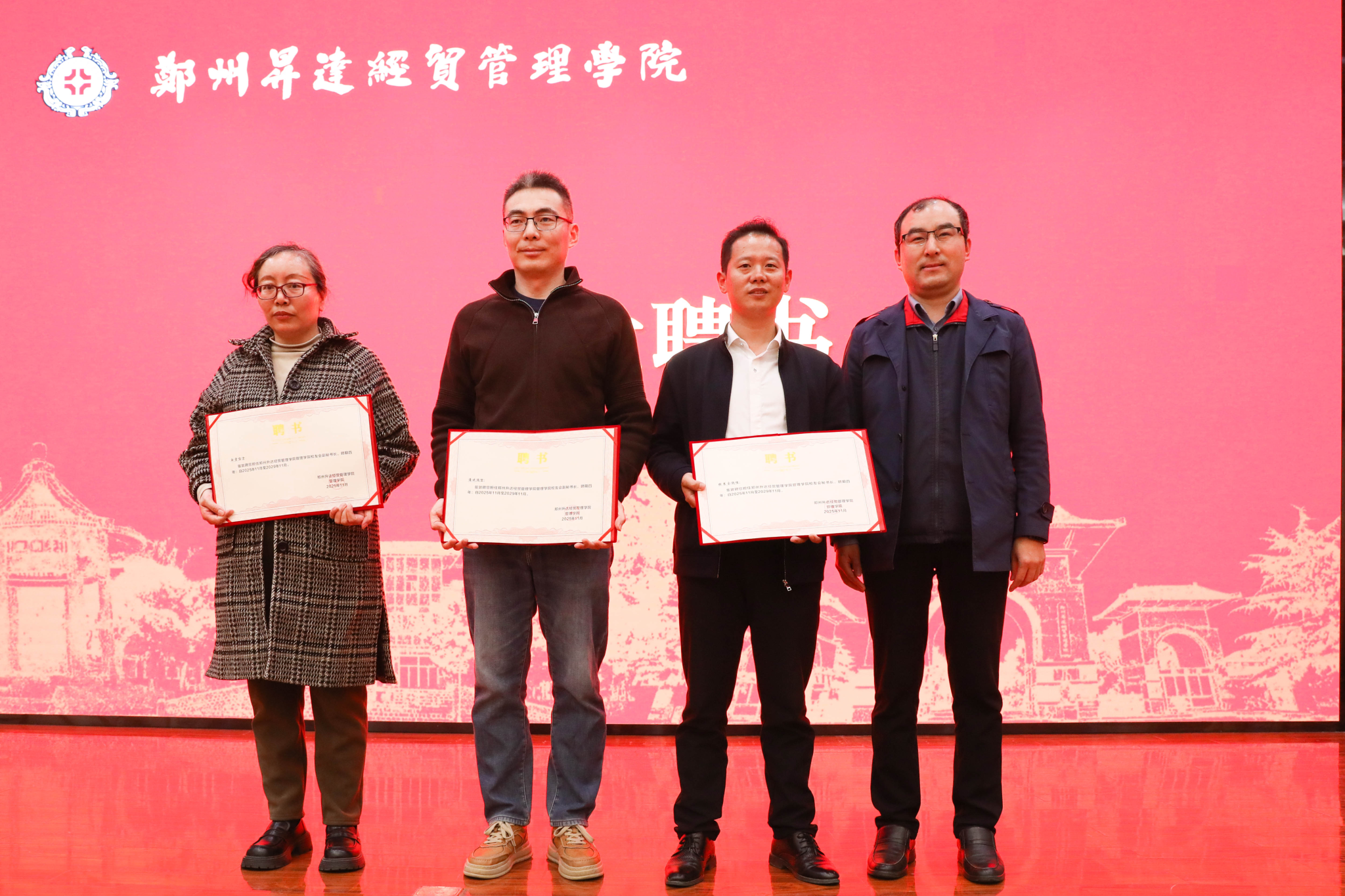 牛草宣读《关于同意成立管理学院校友会的批复》,并宣布首届校友会顾问、会长、副会长、秘书长、副秘书长名单。随后,张金安为管理学院校友会顾问李红杰、杨波颁发聘书;张其武为管理学院校友会会长巴彦华、副会长吴广营颁发聘书;沈定军为管理学院校友会秘书长张书会,副秘书长潘斌、白雪颁发聘书。