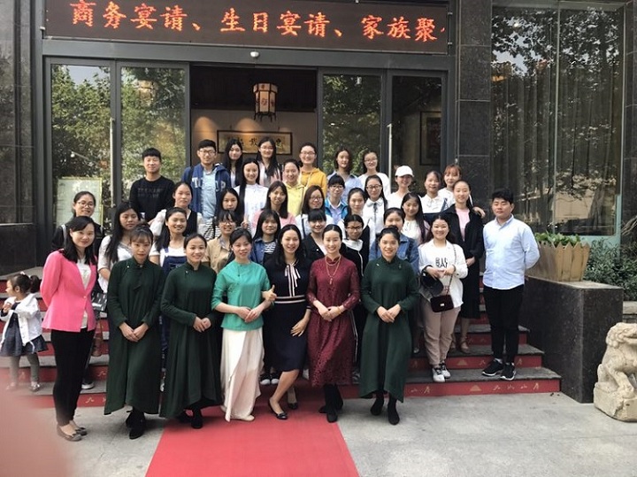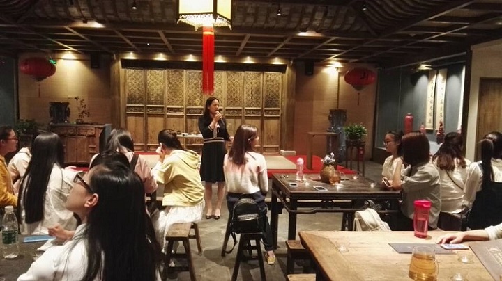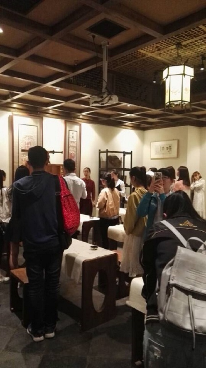 最后,九如山房董事长尹总给大家介绍了九如山房的企业文化。她从九如山房名称之由来,九如山房的商务活动,建筑主调,以及整体建筑风格韵味等,让同学们感受到了中华古文化,以茶会友的意境。尹总也欢迎同学们来实习,共同传承发扬中华文化。