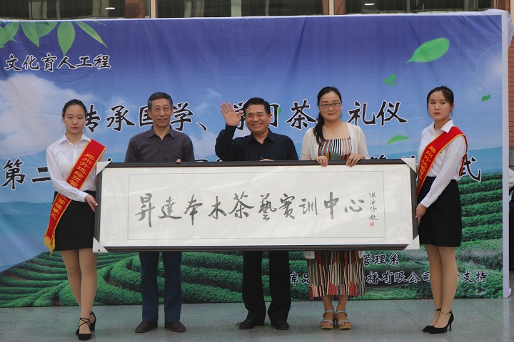 书法家也在现场进行了书法展示。活动最后,由院党委书记张德伟同志为管理系茶艺实训中心授牌匾。