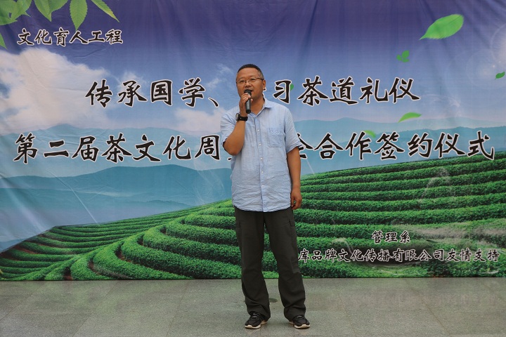 活动伊始,崔慕岳教授发表致辞。他讲到:“茶文化,是中华民族文化中一颗璀灿的明珠,而茶艺是茶文化的综合体现,传承这门国学,我们要承担起这份责任。”