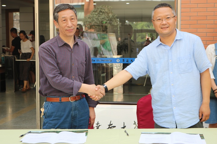我校与瓦库品牌文化传播有限公司合作协议签字,并互授牌匾,互授纪念品,现场响起了阵阵掌声。