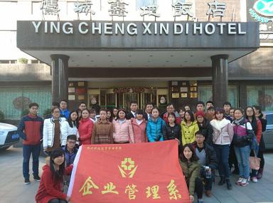 为了让企管系学生更好地了解社会动态,深入了解企业的运行情况,2014年12月4日中午12:40分,在企管系党总支副书记张小雁、2012级辅导员刘超、吴文妍以及企管系团学会团委副书记王秀昌的引领下,企管系一行45人乘坐校车前往郑州鹰城鑫地酒店进行实地参观。