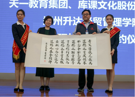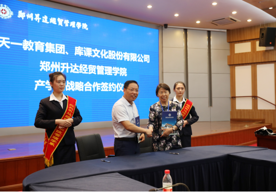 接下来,校长郭爱先教授代表我校与天一教育集团、河南库课文化股份有限公司签订了产学研战略合作协议。