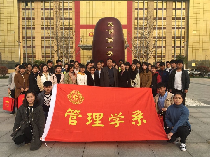 为了锻炼我校学生的社会实践能力,加强企业对消费者购买需求的了解,管理系2016级辅导员吴文妍带领下于2017年3月31日下午1:20去往新郑市“好想你”枣业股份有限公司进行参观。