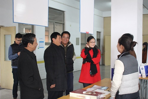 我院党委副书记戎庭银同志、团委书记秦旻老师、招生就业处处长刘景向老师、就业辅导科科长冯科老师在我系系主任纪德尚教授、党总支书记张小雁同志和行政秘书兼团委书记许广庆老师的陪同下出席了招聘会。