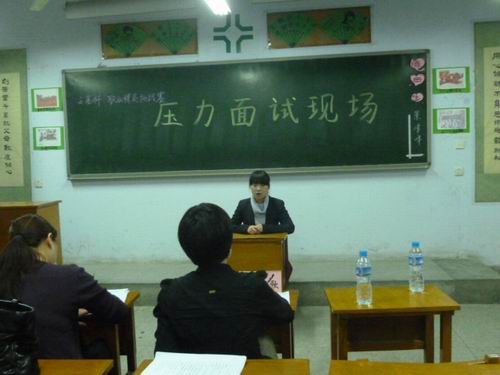 本次复赛压力面试共分为五个小组同时进行,每人的面试时间为7-10分钟,每组由两个评委对面试者进行面试。在面试中,面试官首先对其选手的简历进行打分,然后让选手进行简单的自我介绍,尔后由面试官提出问题,选手对其回答。在场的选手自信大胆又不失沉着冷静、幽默诙谐又不失稳重镇静,简答有力的回答让面试官不时点头表示满意,其优秀的表现让整个场面严肃而活泼。最后,评委们会经过认真筛选、讨论,根据选手的综合表现得出分数,确定出进入决赛的人选。