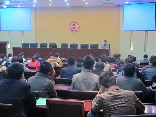 招聘现场,同学们首先观看北京潮皇食府的视频,对潮皇食府有了初步的了解;随后,范明经理介绍了本公司的发展历程以及此次招聘的条件,让参加本次招聘会的学子对其有了更全面的了解。