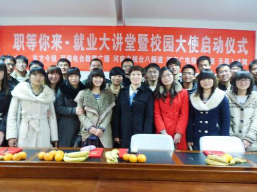 接着,应公司的主管邀请,同学们参加了天基咨询有限公司的《就业大讲堂暨校园大使》启动仪式,在仪式上,同学们聆听了天基人才网创始人赵总关于《职业精神》的报告,赵总从大家耳熟能详的“白求恩”入手,为我们分析了当前企业需要的人才所具备的职业素质以及如何加强自我修养,着重强调了职业精神对于职业化管理团队成员的重要性。