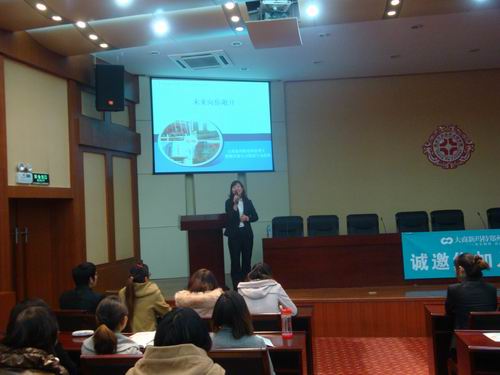 招聘现场,首先观看大商集团和大商集团金博大店的视频;随后,大商集团郑州新玛特安玲部长和侯竟博科长先后介绍了本公司的发展历程,让参加本次招聘会的学子对其有了更全面的了解。