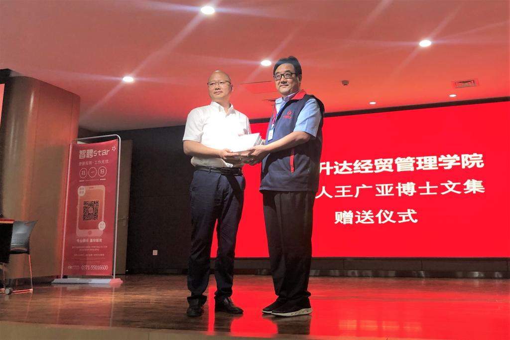 首先,执行董事王新奇博士代表校方向耿俊华总经理颁发了客座教授聘书,并赠送了升达创办人王广亚博士的珍贵书画。