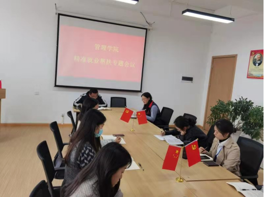 管理学院为进一步做好2021届毕业生就业工作,于2021年4月1日下午在我院二号楼305室召开精准就业帮扶专题会议,管理学院党总支书记张小雁老师、行政秘书许广庆老师及全体辅导员参会。