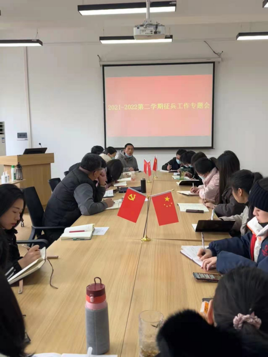 为进一步贯彻落实国家《征兵工作条例》的相关政策方针,增强大学生爱国的责任意识,推动国防和军队现代化的基础性工程建设。管理学院于2022年2月22日在2号楼305室召开2022年征兵工作专题会议,管理学院党委书记张小雁同志及全体辅导员参与此次会议。