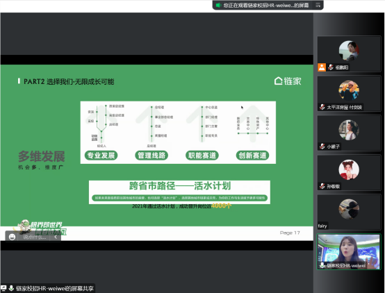 经过前期的充分筹办,直播活动首先由祖鹏阳对四家宣讲企业进行简介。随后四家企业依次进行宣讲,由每家企业的招聘负责人向同学们详细介绍企业的发展历程、企业文化、任职资格、岗位职责等主要内容,同时重点向我院学生介绍管培生项目及特别遴选的优质对口岗位,比如旅游规划设计实习生、顾问型经纪人、酒店管培生等。我院学生在直播间积极与企业方进行连麦提问,互动良好,直播在线人数可观。