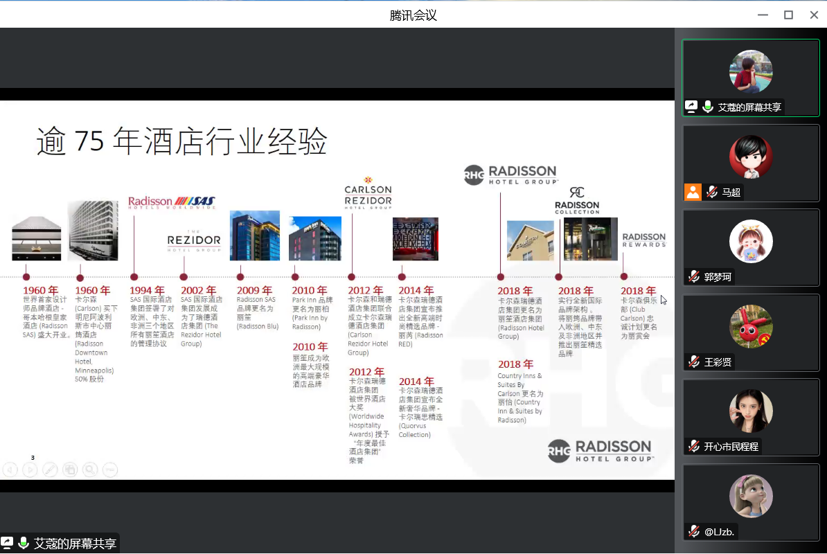 为做好2023届毕业生就业工作,管理学院组织策划了一系列线上专场宣讲会,邀请知名企业进行空中宣讲。2022年10月29日上午10时,通过腾讯会议的形式,举办了郑州天地丽笙酒店的专场宣讲会。此次活动由2023届毕业班辅导员马超主持,2023届酒店管理专业学生参与。