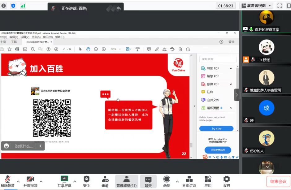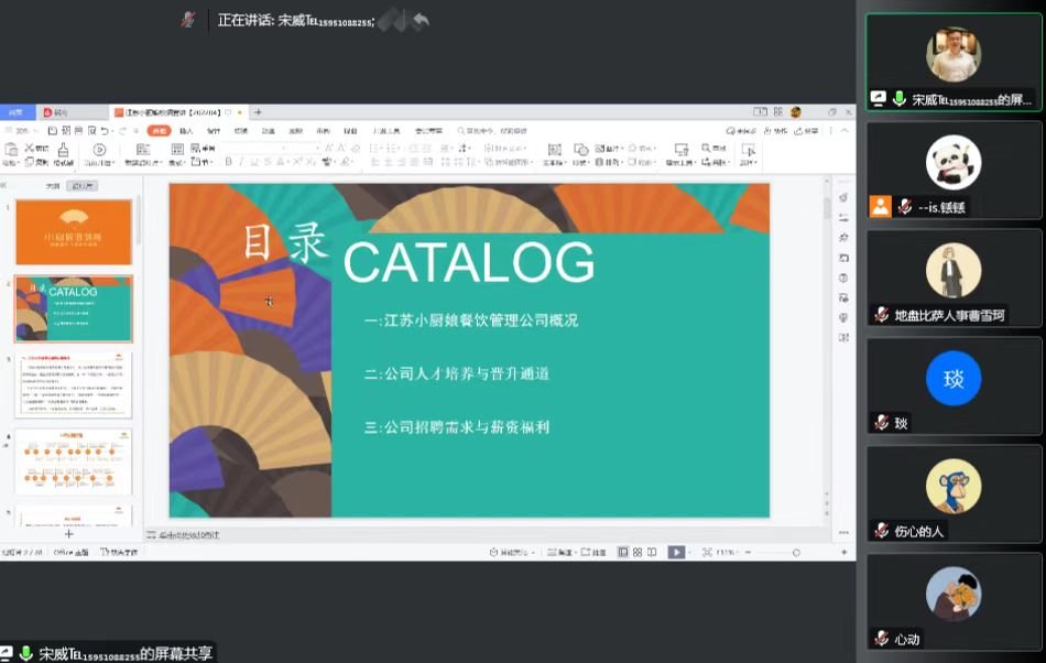 为做好2023届毕业生的就业保障服务,密切整合资源,对接校企合作。我院于2022年11月10日下午3点通过腾讯会议的形式,举办了“直播带岗,‘职’等你来”线上招聘会——餐饮行业专场,由毕业班辅导员张瑞霞老师主持,企业人力资源专员通过线上网络直播进行岗位推介,为我院毕业生打开求职招聘的有效通道。